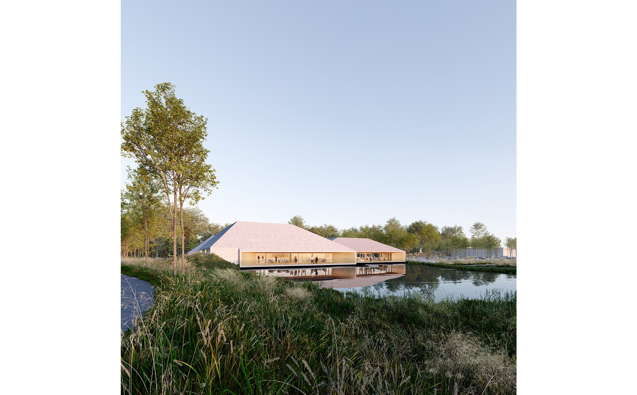 Chacune de ces entités s’organise autour d’une forme simple quadrangulaire qui entoure une toiture plate technique, un vide plan.