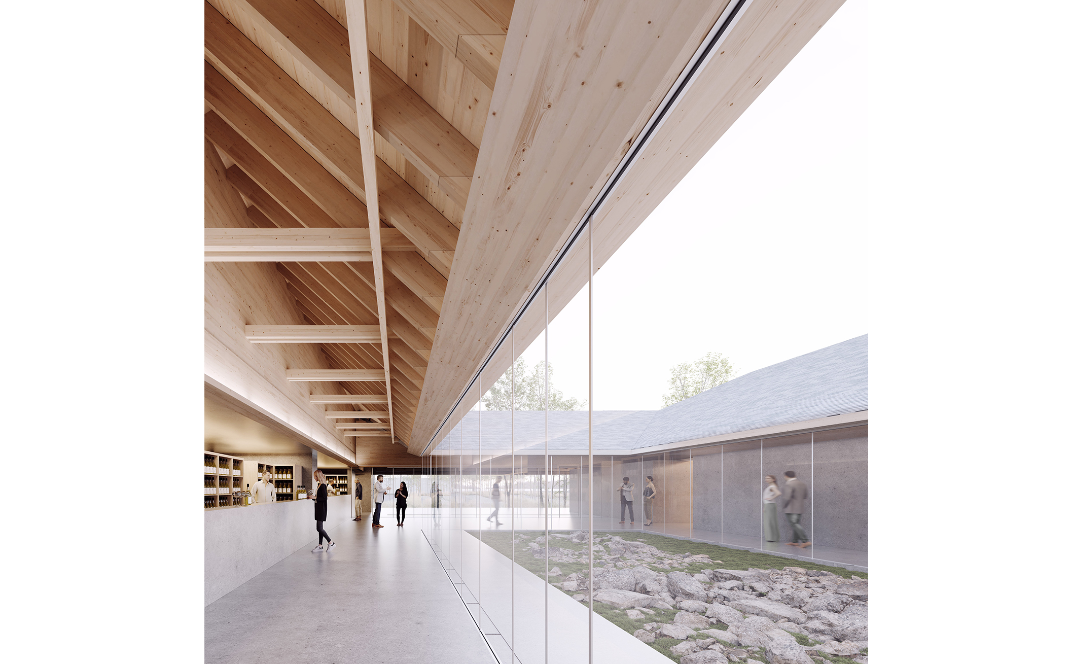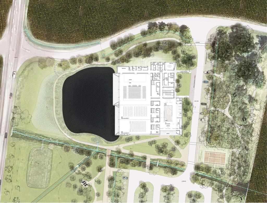 La figure du cloitre, inspirée du Clos de Vougeot est convoquée et réinterprétée ; additionnée